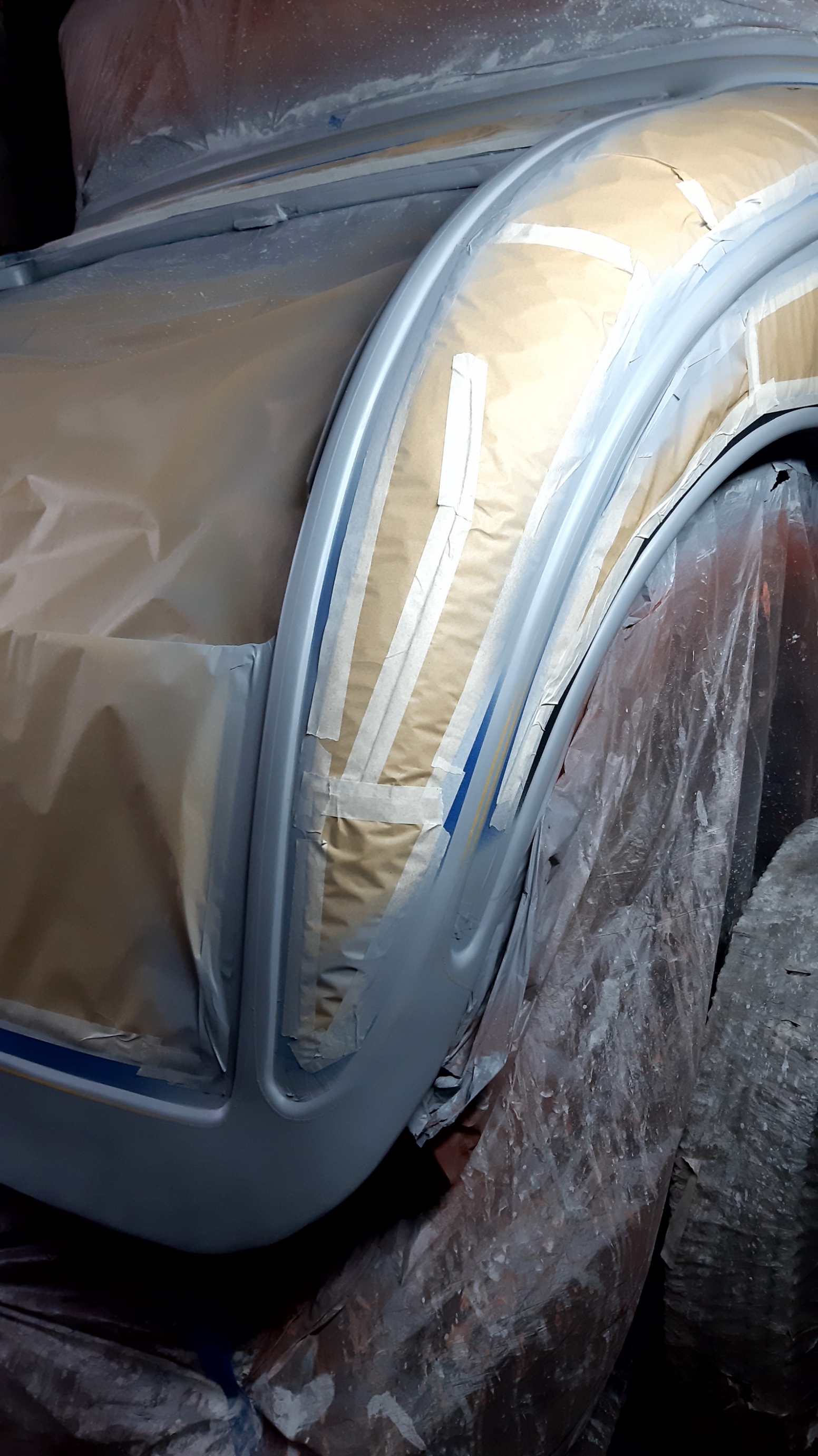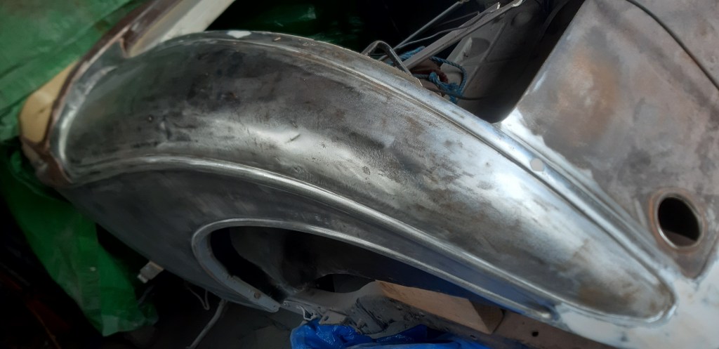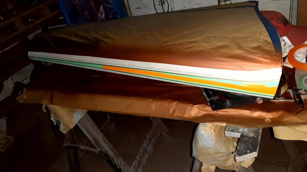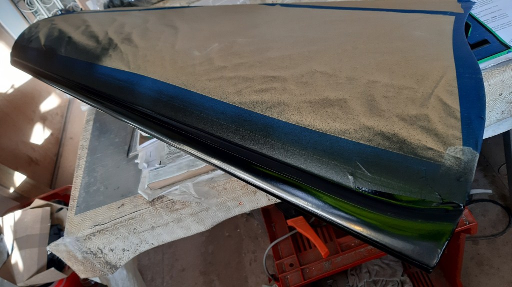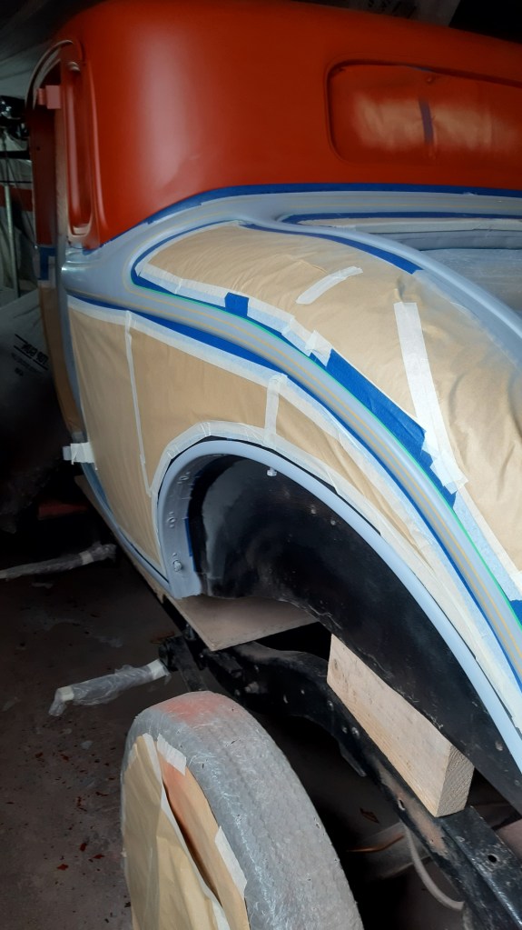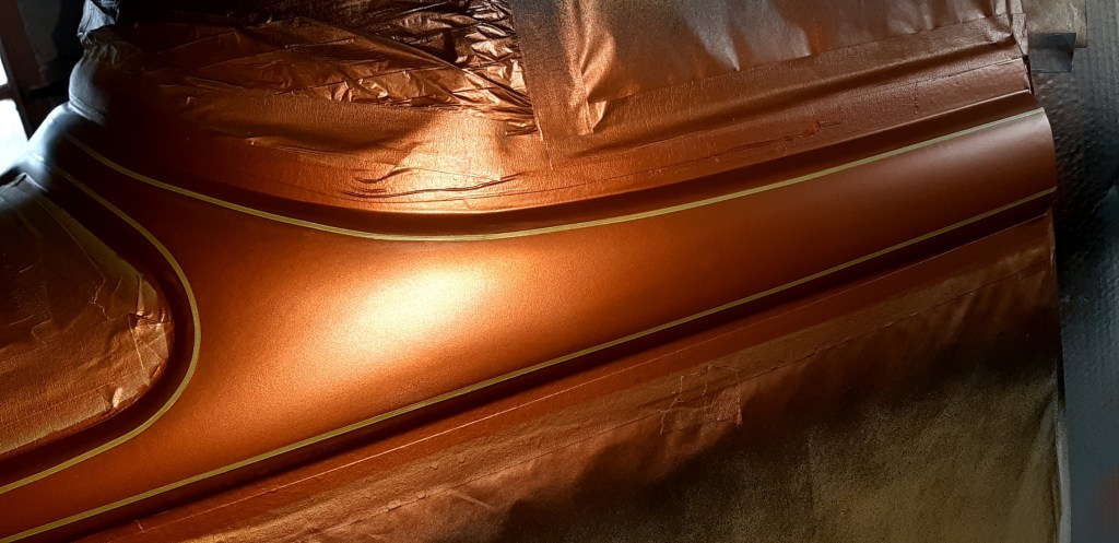 16/02/2022 Wet sanding, epoxy primer followed by layout for bead lines and trials for pin stripes.