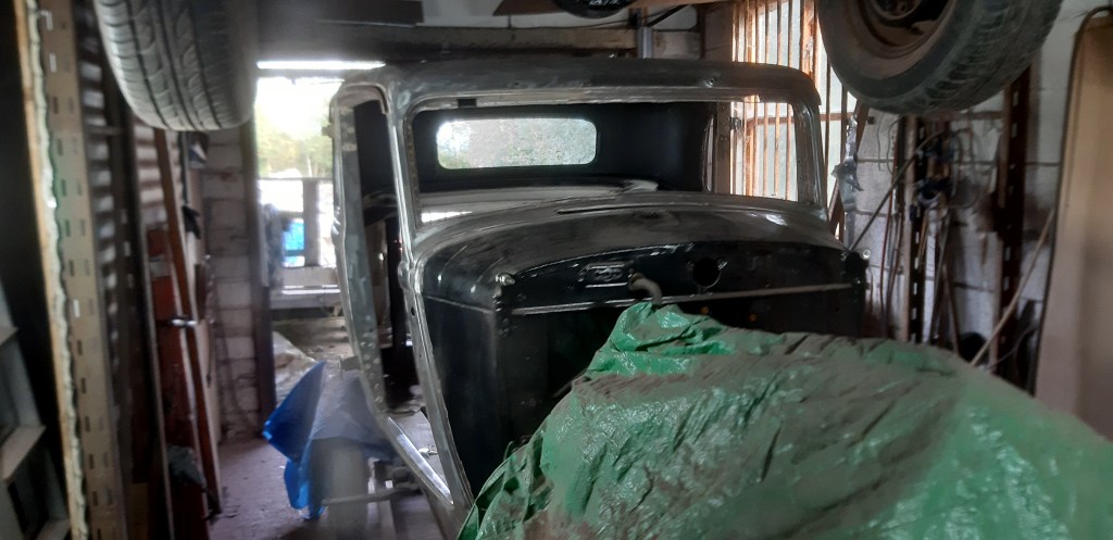 Big steps are starting to happen, Body is now bolted to the frame, Splash Aprons are on ready for the running boards, Doors and Trunk lid hung but some minor adjustments are required.