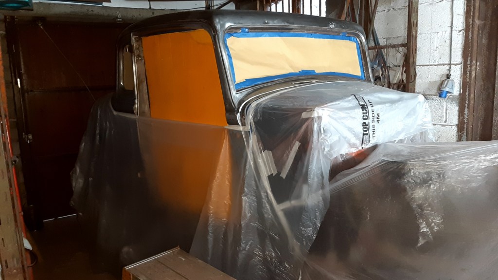 27/05/2023 Not posted for a while but things have been happening, most of the interior has been made at home where I had better light and cleaner working conditions. Most of the backboards were made in 2014 before I had purchased the 1934 PE Pickup, of course once that arrived from Austin TX prioritise changed. So the next series of photos tell the story today, next week the roof insert will go in, it’s finished apart from fitting, the headlining, this will mean that the 2 rear quarter will have to come back out, that’s no big deal.