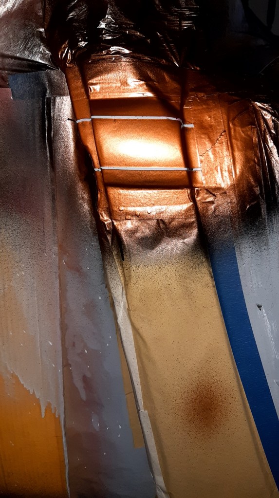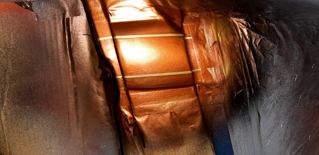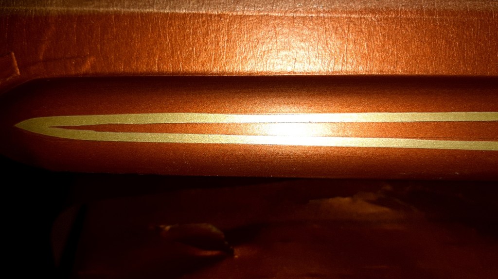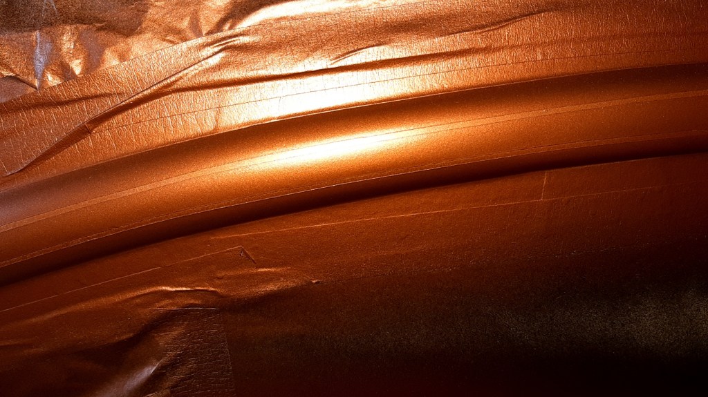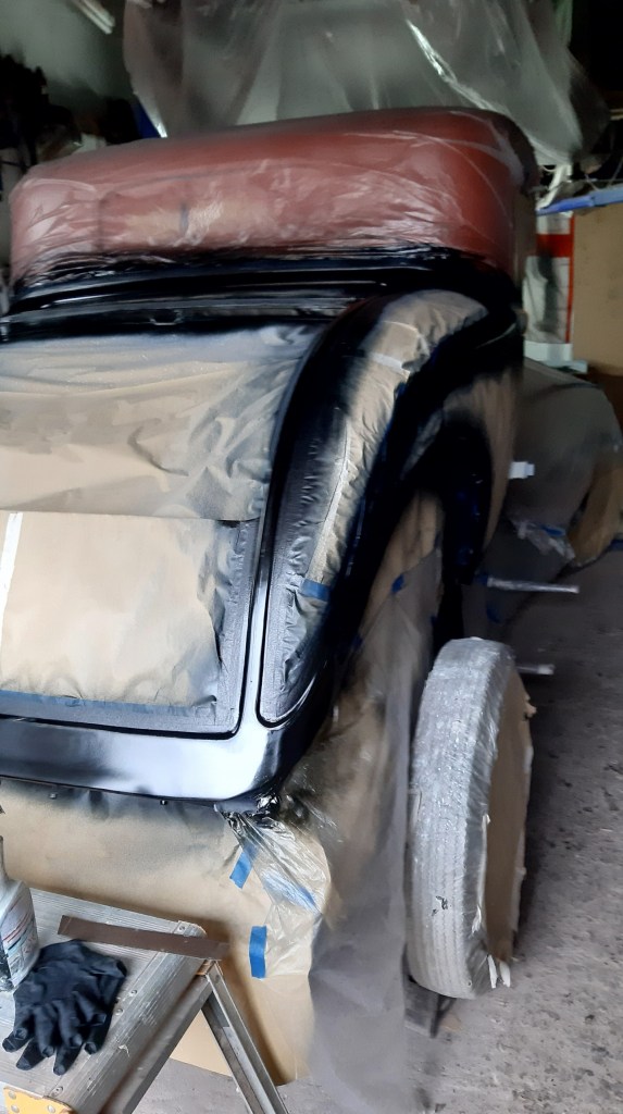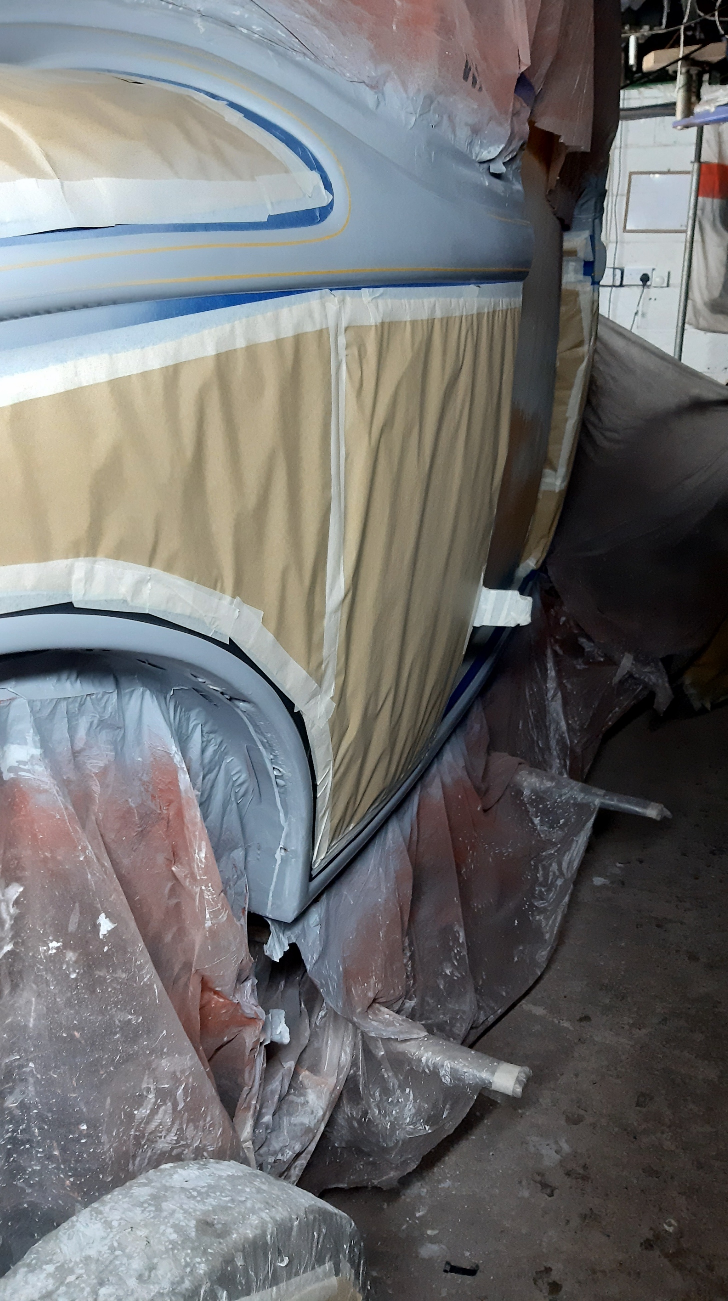 04/03/2022 This respray is taking forever only hope when finished the onlookers appreciate the time and money spent on it to give the desired effect. this is the problem on knowing what I want it to be without having the skill set to achieve it. The bead lines will be Metallic Brown with Gold Pin Stripes on an Old English White back ground. Because of the length of time involved and the fact of having to use Base coat and 2K Clear coat the car has been masked up again.