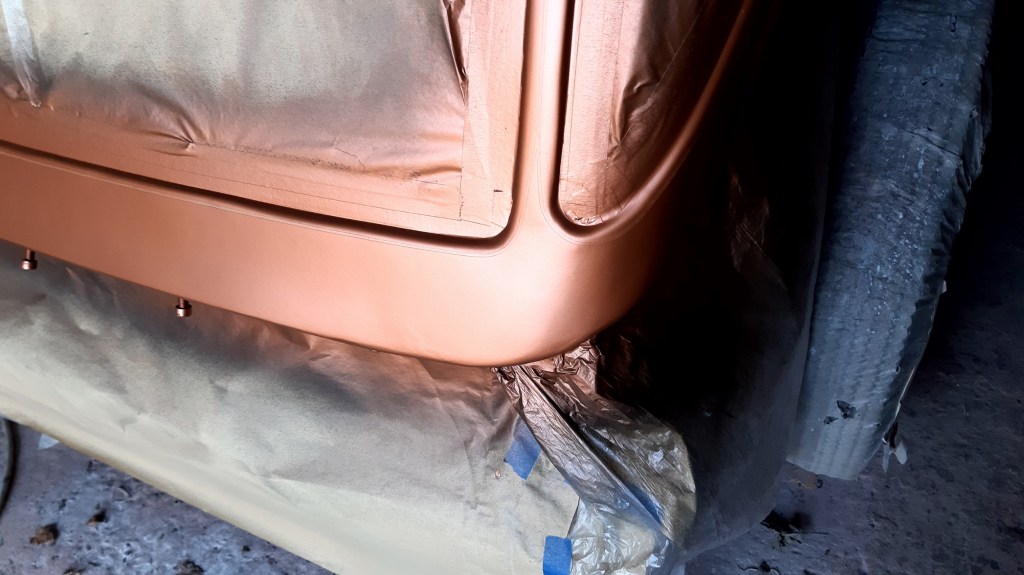 14/04/2022 Today the 2 coats of clear coat were laid down. Looking forward to the next update that will be the results of the Old English White finish between the bead lines, hopefully I can get a pleasing finish because the solid acrylic can be temperamental between dry over spray and runs.