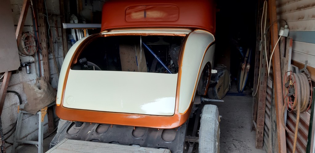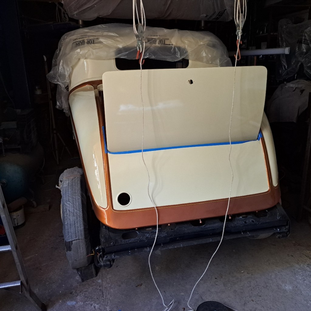 30/05/2022 Very pleased with the way the 2K acrylic laid down, second photo is the 89 year old timber bearers which go between the body and the frame.