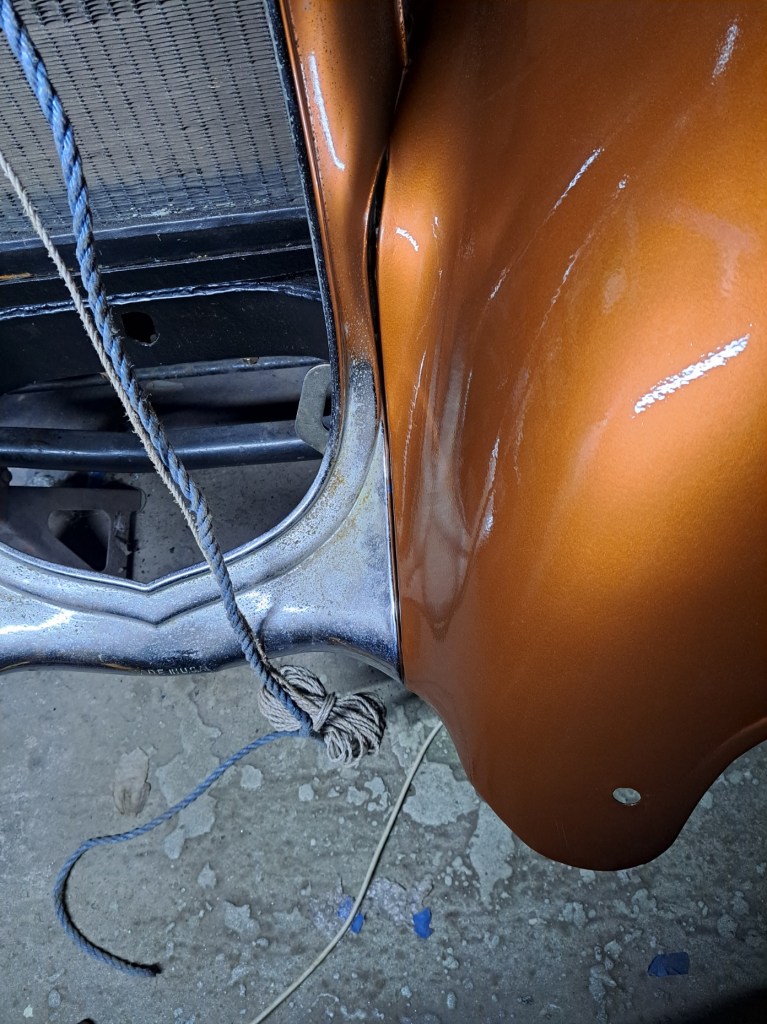 22/11/2022: Found out that the previous owner had set the radiator height wrong, Towards the bottom of the rad the sides step inwards to allow the inside edge of the fenders to fit to the rad shell. This entailed increasing the packing under the rad by 3/8″, a little trial and error may be required.