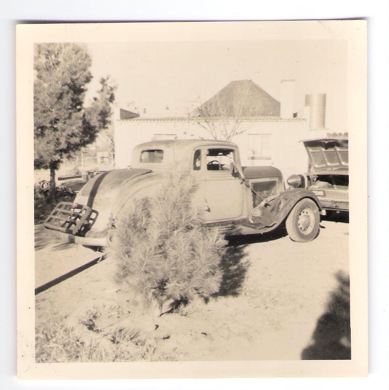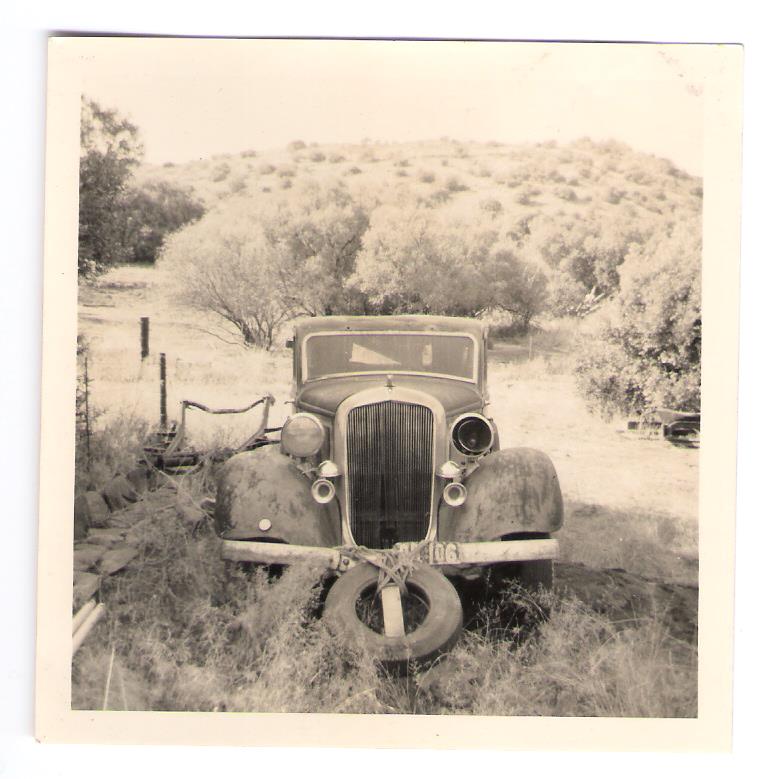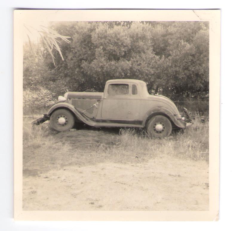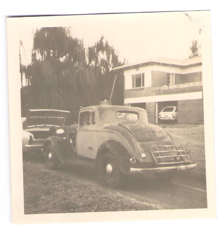 1933/34, Purchased by the grandparents of Attie Steyn of Bloemfontein, I am of the opinion that it may not have been sold until 1934 as the early photos show it sitting on steel artillery wheels which were first available for the 1934 PE model, obviously stronger than the wire spoke wheels and perhaps more suitable for the rough country roads of South Africa.
