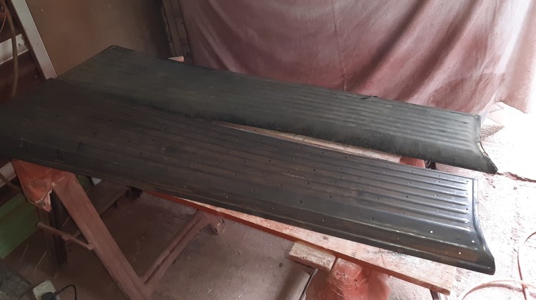 Now on to the Running Boards these are in bare metal so I am investigating the feasibility of recovering in 2mm Rubber sheet grade EPDM, it will entail making a simple jig to maintain the bead form to the treads. These 34 Running Boards are identical to my 33 and if it works I shall recover both sets