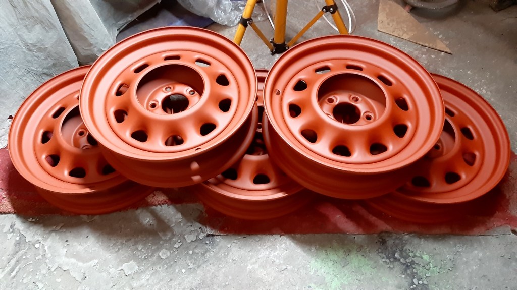 10/12/2020 Had a break from spraying this week due to the air temp. being below 10°F so I picked up the 85 yr old Artillery Wheels back to bare metal and get red oxide primer on them over the wkend.
