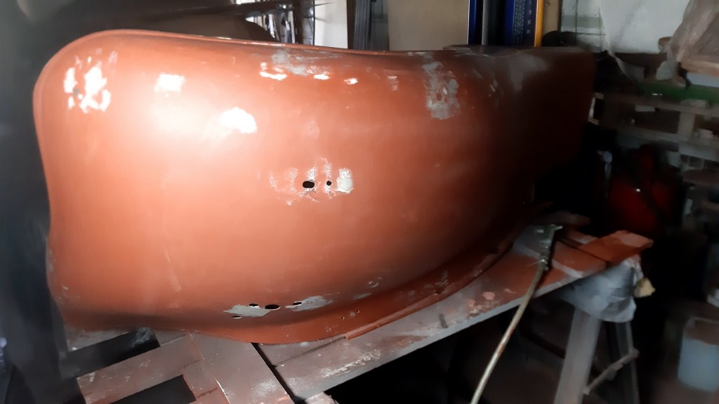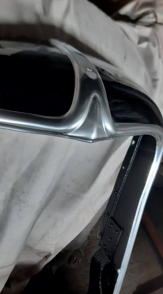 Well this Rad Shell is better than I originally thought, pity the chrome that was put on it 86 yrs ago wasn’t more even, the front bead would have been the only part that remained polished the rest would have been painted and it’s the painted part that is very sound.