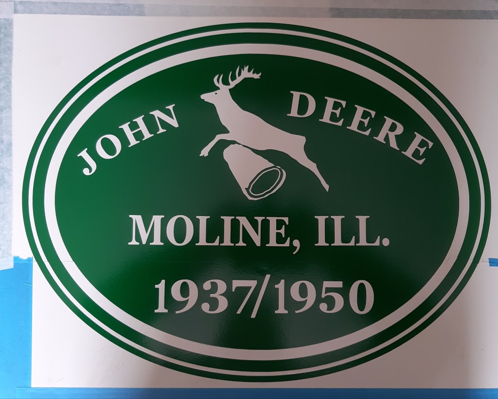 Door logo this is the 1 st proof to try, the green will be old English white and the white Johnson Deere green. Second photo 29/09/2020 Finally managed to finish the trial logo for the doors, the diamond white is wrong