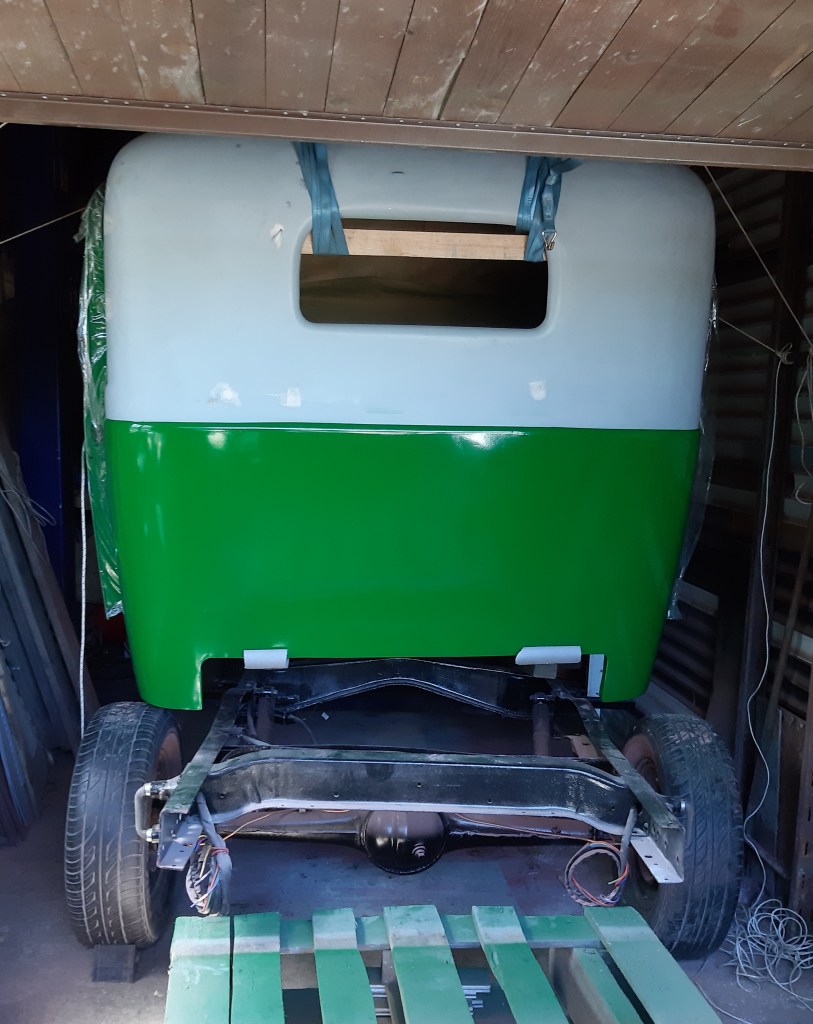 11/10/2024. Been awhile since posting on this one, have moved my workshop around so that I could get the rest of the body in colour. Not an easy job when the entrance to the unit is on a steady slope for about 30 ft and neither of my first 2 builds have brakes or running engines.
