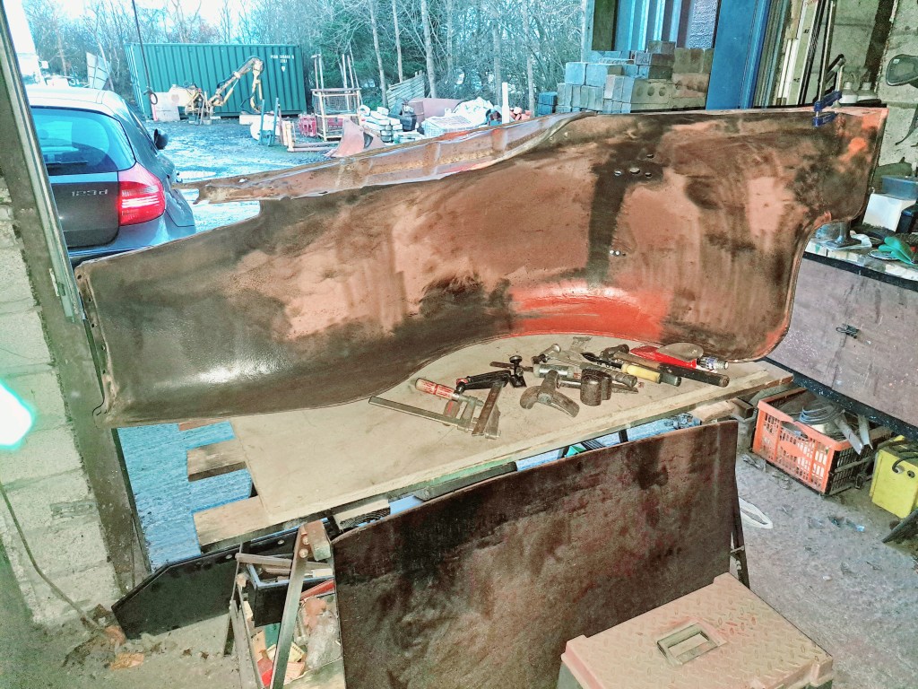 06/12/2023 This is the last fender of 6 being part of the three restorations, this will be my last, not enough years left to do another and get pleasure of showing them off. Last time major work was carried out was 1986 when it had shot blasting and red-oxide holding coat.